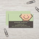 Cartes de visite orientés personnalisés de bébé adorable de cartes de visite de bébé qui sont prêts à personnaliser avec votre nom, site Web et information de contact et à comporter une illustration mignonne de visage de bébé de bande dessinée avec un modèle de couleurs vert et brun. Utilisation pour vos affaires, site de métier ou passe-temps bébé-orienté. Préparez pour personnaliser. Doublez dégrossi, et le dos peut être customisé.