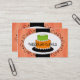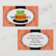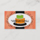Conception de cartes de visite de boulangerie de gâteau de mariage par le © d'Elke Clarke. Gâteau de mariage floral de vert d'orange et de chaux sur un arrière - plan orange avec des accents noirs.
