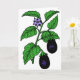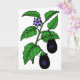 L'aubergine est un plante intéressant et un peu inhabituel. Ce design est un merveilleux exemple d'aubergine avec le fruit accroché à des feuilles verts et aussi une fleur violette. Ce design d'aubergines est parfait sur ces cartes de voeux