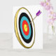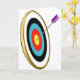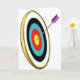 Si vous êtes dans le tir à l'arc ou savez que quelqu'un qui est alors vous allez aimer cette conception de tir à l'arc. Caractéristiques de conception ce la cible de tir à l'arc sur un angle avec une flèche collant hors de la boudine. La cible de tir à l'arc est gentille et colorée. Cette conception de tir à l'arc semble grande sur ces cartes de voeux