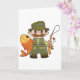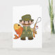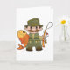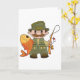 Aimez la pêche alors vous allez adorer ce design. C'est un pêcheur avec un poisson qu'il a attrapé. Fait dans un style caricatural amusant. Le pêcheur est habillé de son équipement de pêche et a un poisson orange dans une main et sa canne de pêche dans l'autre. Ce design de pêcheur est parfait sur ces cartes de voeux