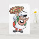 Pizza est le préféré de tous et ce design s'amuse avec la pizza. Il s'agit d'un chef pizzérien tenant une pizza haute à mesure qu'il la fabrique. Fait dans un style de dessin animé, ce boulanger à pizza a un gros sourire sur le visage. Cette conception de boulangerie à pizza semble très bien sur ces cartes de voeux
