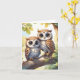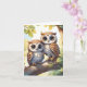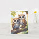 De mignons hiboux kawaii chibi ensemble sur une branche d'arbre ornent cette carte de vœux vierge.