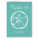 Cartes d'endroit de table de mariage de plage du dollar de sable. Cartes de note pratiques pour aider l'invité à trouver leur nombre de table. Une partie d'ensemble mignon de mariage de destination de plage. Couleur personnalisable. Aque/bleu de turquoise.