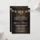 Cartes d'invitation au dîner de répétition illuminées de l'ancre nautique rustique vintage - comportent un fond rustique de grange ou de bois avec des guirlandes lumineuses et une ancre dorée élégante. Le verso présente le même fond avec des guirlandes lumineuses.