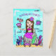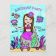 Un moyen mignon et abordable d'inviter des amis à la fête d'anniversaire d'une petite fille. Une sirène caucasienne brune aux yeux verts et ses amis sous la mer, dessinés à la main dans un style d'art folklorique fantaisiste, pour une invitation d'anniversaire de fille aux couleurs vives.