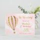Envolez-vous avec cette carte d'invitation d'anniversaire montgolfière rose et or. La montgolfière est d'un or scintillant.