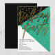 Cartes d'invitation d'anniversaire sarcelle noir or en bloc de couleur. Personnalisez pour tout événement.