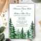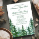 Cartes d'invitation de mariage au sapin avec une belle forêt aquarelle de sapins sur un fond de la couleur de votre choix. Ces magnifiques cartes d'invitation de mariage rustiques au sapin sont facilement personnalisables pour votre événement en ajoutant simplement vos détails dans le style de police et la formulation de votre choix.