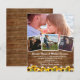 Cartes d'invitation de mariage rustiques abordables avec un fond en bois de style campagnard chic, 4 photos du couple fiancé, tournesols jaunes vifs, guirlandes lumineuses et un modèle de mariage moderne facile à personnaliser. NOTE IMPORTANTE : Il s'agit de feuilles de papier à petit budget, elles ne sont pas livrées avec des enveloppes. Cependant, ce design peut être transféré sur des cartes d'invitation qui sont livrées avec des enveloppes.