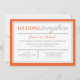 Cartes d'invitation de réception uniquement avec un design de typographie moderne orange et gris et une bordure orange et gris pour votre célébration post-mariage. Le verso est un orange uni.
