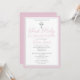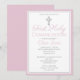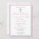 Célébrez cette étape importante avec une invitation à la première communion moderne et élégante. Ce design présente une simple croix argentée sur fond blanc avec une bordure rose. Créez l'invitation parfaite pour la première communion d'une fille en personnalisant la couleur, la police, la date et tous les détails du texte.