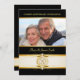 Cartes d'invitation élégantes et personnalisées pour une fête de 50e anniversaire de mariage -- Accents décoratifs vintage or et ivoire sur fond noir avec cadre photo et monogramme antique classique. Ajoutez votre propre photo et personnalisez le nom, la date et les détails pour votre célébration d'anniversaire de mariage spéciale. Enveloppes assorties, timbres et cartes de remerciement disponibles. **REMARQUE : Format adapté pour les cartes d'invitation PETIT format 4,25 x 5,5. D'autres tailles et styles sont disponibles dans la galerie.