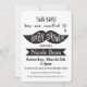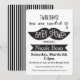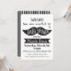 Cartes d'invitation noir et blanc pour la fête prénatale de bébé jumeaux à la moustache.