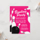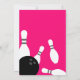 Modèle de cartes d'invitation pour anniversaire de bowling rose néon. Invitations modernes avec boules de bowling noires et quilles blanches. Personnalisez avec votre propre nom et texte. Activité amusante pour les enfants et les adultes. Fond rose ou couleur personnalisée. Allons nous amuser !