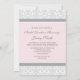 Invitations nuptiales au déjeuner dans d'élégantes couleurs pastel rose pâle, gris et blanc classique floral damask vintage motif, chic et féminin, personnalisable avec vos détails de douche. Également disponible en cartes de remerciement et invitations pour la fête de mariage.