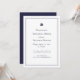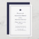 Cartes d'invitation pour dîner de répétition de mariage de navire bleu marine nautique. Avant - blanc avec une fine double bordure bleu marine, illustration de navire bleu marine en haut au centre et texte bleu marine partout. Le dos est en bleu marine uni.