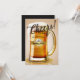 Cartes d'invitation pour fête d'anniversaire bière avec une bannière dorée sur un fond de chope de bière pétillante. Cette carte d'invitation de fête d'anniversaire bière élégante est facilement personnalisable pour votre événement en ajoutant simplement vos détails dans le style de police que vous préférez.