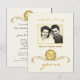Élégantes cartes d'invitation personnalisées pour 50e anniversaire de mariage -- accents dorés vintage décoratifs sur fond de parchemin ivoire avec cadre photo et monogramme antique classique. Ajoutez votre propre photo et personnalisez le nom, la date et les détails pour votre célébration d'anniversaire spéciale. Enveloppes assorties, timbres et cartes de remerciement disponibles. **REMARQUE : Format pour les cartes d'invitation PETIT 4,25 x 5,5. D'autres tailles et styles sont disponibles dans la galerie.