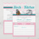 Cartes d'invitation pour la douche de la mariée 'Étoffer la Cuisine' mignonnes et modernes, conçues dans des tons rose, sarcelle et gris avec un motif chevron, imprimées sur mesure avec les détails de la douche de la future mariée, et comprenant une carte de recette (environ 3" x 5") pour que vos invités la remplissent et la détachent (non perforée) pour vous l'apporter en cadeau lors de votre célébration.