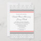 Invitations de douches nuptiales dans élégantes peach rose orange, gris et blanc classique damas floral vintage motif, chic et féminin, personnalisable avec vos détails de douche. Également disponible en cartes de remerciement et invitations pour la fête de mariage.