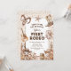 Capturez l'esprit animé du Far West avec nos invitations pour un premier anniversaire ! Personnalisez une charmante scène désertique ornée de confettis, de chevaux, de vaches et d'objets emblématiques de cowboy. C'est le premier rodéo de votre petit, et croyez-nous, ces invitations le rendront inoubliable.