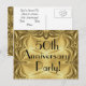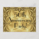 Cartes postales d'invitation élégantes au look vintage doré pour une "Soirée d'anniversaire de 50 ans" avec un texte noir stylé. Facile à personnaliser avec toutes les informations nécessaires au verso ou simplement supprimer le texte exemple pour écrire à la main plus tard. Ou changez le texte du recto pour une autre occasion spéciale, comme d'autres anniversaires, mariages, départs à la retraite ou une invitation d'anniversaire "Save The Date". Élégantes et raffinées, d'aspect luxueux, mais abordables, ces cartes postales avec un superbe fond doré se démarquent vraiment par leur style pour vos invités !