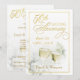 Élégantes invitations pour la célébration des 50 ans de mariage -- Roses de mariage et verres à champagne sur fond BLANC avec lettrage en script doré. Personnalisez les noms, dates et détails pour cette occasion spéciale et honorée. Cartes de timbres et de remerciement assorties disponibles dans la galerie.