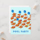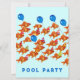 Cartes d'invitation pour une fête au bord de la piscine avec des poissons de l'école de fête drôles.