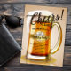 Cartes d'invitation pour une fête d'anniversaire bière avec une bannière dorée sur un fond de chope de bière pétillante. Cette invitation de fête d'anniversaire bière élégante est facilement personnalisable pour votre événement en ajoutant simplement vos détails dans le style de police que vous préférez.