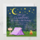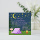 Cartes d'invitation pour une fête d'anniversaire glamping avec une tente violette mignonne sur un fond de forêt nocturne. Ces invitations de fête d'anniversaire de camping mignonnes pour filles sont facilement personnalisables pour votre événement en ajoutant simplement vos détails dans le style de police et la formulation de votre choix.