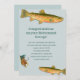 Cartons d'invitation pour une fête d'adultes pour un pêcheur. Truite mouchetée et leurre de pêche à la mouche sur papier gris-bleu avec texte sombre. Utiliser pour une célébration d'anniversaire ou de retraite pour l'homme qui vit pour la pêche. Personnalisez le texte en deux sections avec un texte imprimé en gras en haut pour dire « Félicitations pour votre retraite » ou « Joyeux 50e anniversaire » avec son nom. Incluez beaucoup de texte avec les informations de la fête, ou utilisez des espaces pour remplir le paragraphe. Parfait pour l'anniversaire d'un mari ou la fête de retraite d'un père.
