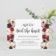 Cette carte d'invitation sur le thème floral burgundy champêtre est parfaite pour votre réception de mariage / célébration de fête. Ajoutez vos coordonnées dans une police / lettrage noir assorti.