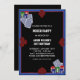 Cartes d'invitation pour une soirée poker avec des cartes à jouer rouges et noires et des jetons de poker. Personnalisez pour votre invitation à une soirée poker ou à une fête d'anniversaire.