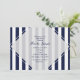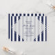 Cartes d'invitation rayées modernes bleues et blanches. Personnalisez pour n'importe quel événement.