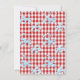 Cartes d'invitation rustiques en bois pour soirée piscine et BBQ. Caractéristiques : un grill rouge, boisson fruitée et éclaboussures d'eau, le dos présente un motif gingham rouge avec davantage d'éclaboussures d'eau. Idéal pour un anniversaire d'été, une demande en mariage ou une fête de fin d'études pour adultes.