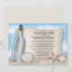 Cartes d'invitation élégamment illustrées pour une réception de mariage sur la plage dans une bouteille avec des coquillages, des dollars de sable, une étoile de mer et un dessin de bouteille transparente avec une illustration de message sur papier et un ciel bleu en arrière-plan, réservées à la réception. Ces invitations réservées à la réception de mariage sur la plage sont utilisées lorsque le couple a un mariage de destination ou une petite cérémonie privée et n'invite ses invités qu'à la célébration de réception après le mariage. Elles constituent une option abordable pour un mariage sur le thème de la bouteille à la mer.