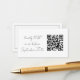 Cartes de boîtier de réponse mariage avec modèle de code QR. Personnaliser texte de script moderne sur les deux côtés des cartes blanches. Demandez aux invités de répondre avant une certaine date et de télécharger votre propre code QR qu'ils peuvent utiliser pour accéder à votre site Web mariage et répondre à l'invitation en ligne. L'autre côté de la carte contient des noms et un endroit pour inclure l'URL du site pour ceux qui préfèrent ne pas scanner.