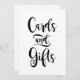 Le panneau "Cartes et Cadeaux" mariage moderne est doté d'une palette de couleurs moderne en noir et blanc avec une typographie manuscrite et audacieuse avec des détails de défilement élégants. Une carte de petite taille peut être affichée avec un chevalet ou un cadre.