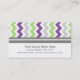 Les cartes de visite de rendez-vous de salon, d'organisateur ou de spa dans le chevron élégant et vintage zigzague motif de rayures dans pourpre, vert, le gris et le blanc. Personnalisable avec vos détails de contact, élégant et contemporain. Contactez-nous pour une couleur faite sur commande.