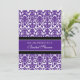 Invitations nuptiales de douche dans le pourpre foncé élégant, motif vintage de damassé florale classique noire et blanche, chic et féminin, personnalisable avec vos détails de douche. Également disponible merci dedans des cartes et des invitations de la partie nuptiale.