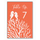 Ces cartes de numéro de table se coordonnent avec la suite mariage Coral Seahorse.
