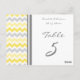 Elégante et moderne citron jaune, gris et blanc mariage carte numéro de table avec motif rétro chevron zigzags. Customisez ces cartes pour créer des cartes numériques personnalisées pour chaque table de votre mariage. Ajoutez vos noms et votre date de mariage. Motif disponible dans une large gamme de produits mariages correspondants.