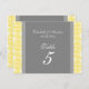 Cartes de numéro de table de mariage jaune, gris et blanc canari élégant et classique avec motif vintage romantique à damas fleuri. Customisez ces cartes pour créer des cartes numériques personnalisées pour chaque table de votre mariage. Ajoutez vos noms et votre date de mariage. Motif disponible dans une large gamme de produits mariages correspondants.