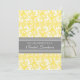 Invitations nuptiales de déjeuner dans le motif lumineux élégant de damassé florale classique jaune citron, grise et blanche, chic vintage et féminin, personnalisables avec vos détails de douche. Également disponible merci dedans des cartes et des invitations de la partie nuptiale.