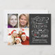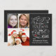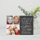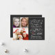 Joyeuses Fêtes de notre maison à la vôtre… Cartes de vœux plates et amusantes avec trois cadres photo. Style tableau noir tendance avec fond noir, fioritures, volutes, flocons de neige, houx, pin et branches de baies créent un cadre hivernal fantaisiste avec une typographie rétro élégante et lettrage calligraphique en écriture cursive tourbillonnante. Ce modèle est configuré pour une photo de famille (une version pour les jeunes mariés/les fiancés est disponible), mais vous pouvez facilement changer le thème. Ajoutez votre photo de famille préférée des fêtes et personnalisez le texte. Un moyen contemporain d'envoyer des vœux de joyeuses fêtes d'hiver à tous vos amis et proches avec une touche vintage élégante. Timbre assorti, invitations de fête de fin d'année et cartes de vœux disponibles sur demande.
