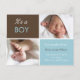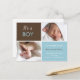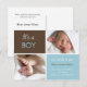 Baby Boy faire-part avec un design de bloc de couleurs chic en bleu et marron. Téléchargez vos photos dans l'espace prévu à cet effet et entrez les informations de votre bébé.