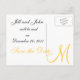 Cartes postales de monogramme personnalisées pour annoncer votre mariage. Personnalisez avec vos noms, initiale et date de mariage. Faites correspondre votre schéma de couleurs de mariage en changeant les couleurs de fond et de texte en sélectionnant l'option "personnaliser". Un design populaire en 2008 de la Galerie Monogramme, porté à votre attention comme un moyen classique élégant d'annoncer votre date de mariage 2011. Conçu par Elke Clarke ©2008, 2009, 2010.