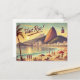 Voici la carte postale de voyage vintage de Rio de Janeiro avec le Pain de Sucre et la plage de Copacabana, et la typographie audacieuse des années 1950. 🌆 Les teintes du coucher de soleil et l'effet défraîchi et blanchi du soleil lui donnent une ambiance nostalgique et rétro.