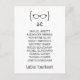 Carte Postale pour Mariage Seating Chart Quirky et chic de lunettes Geeky avec une paire de lunettes geeky. Cette carte décalée mais sophistiquée est parfaite pour votre mariage nerdy ou toute autre occasion ! Facile à customiser, ajoutez simplement le texte personnalisé de votre choix. Cliquez sur le bouton "Customiser" pour trouver d'autres options de personnalisation.